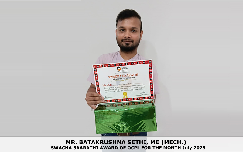 "SWACHA SAARATHI AWARD OF OCPL FOR THE MONTH OF JULY 2025"