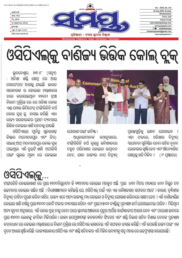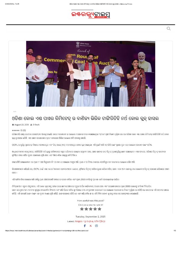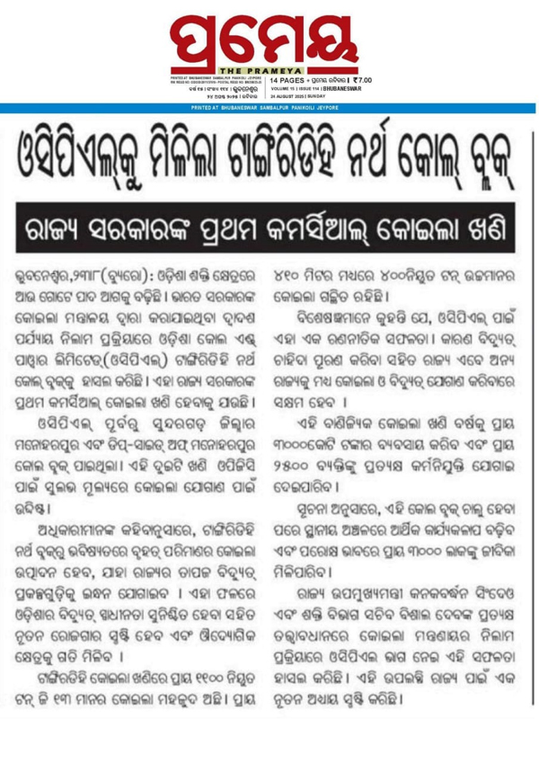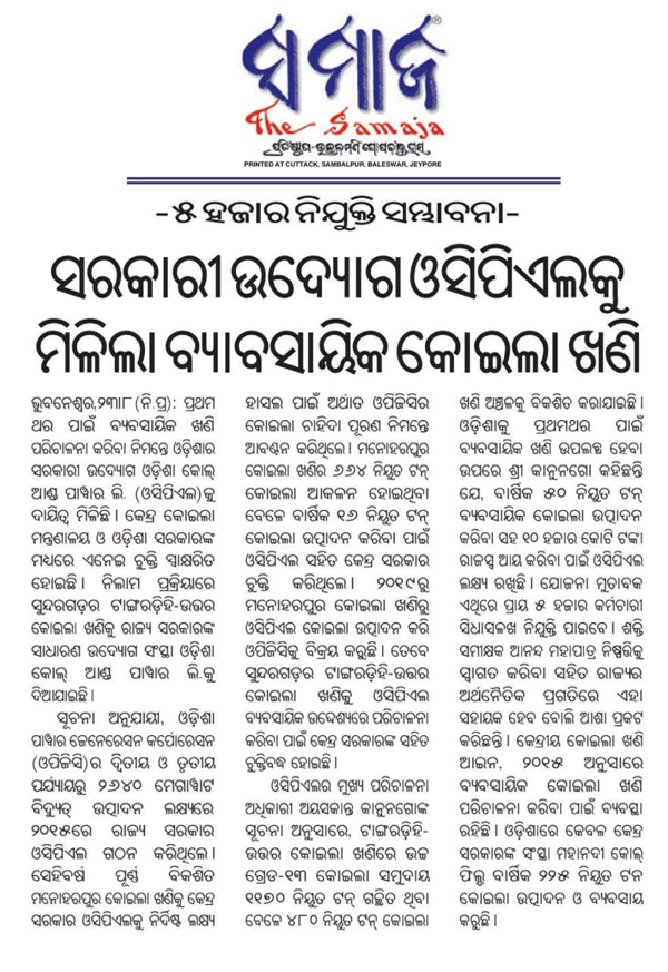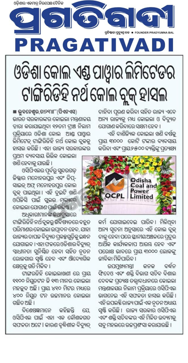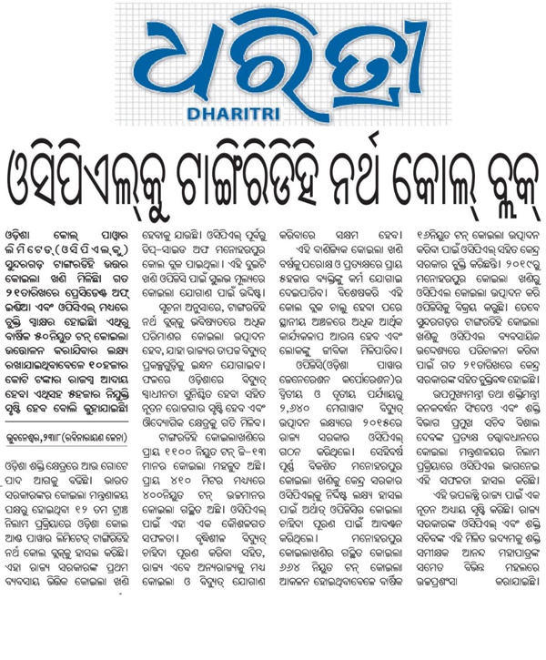"OCPL WON THE FIRST COMMERCIAL COAL BLOCK – TANGARDIHI NORTH"
